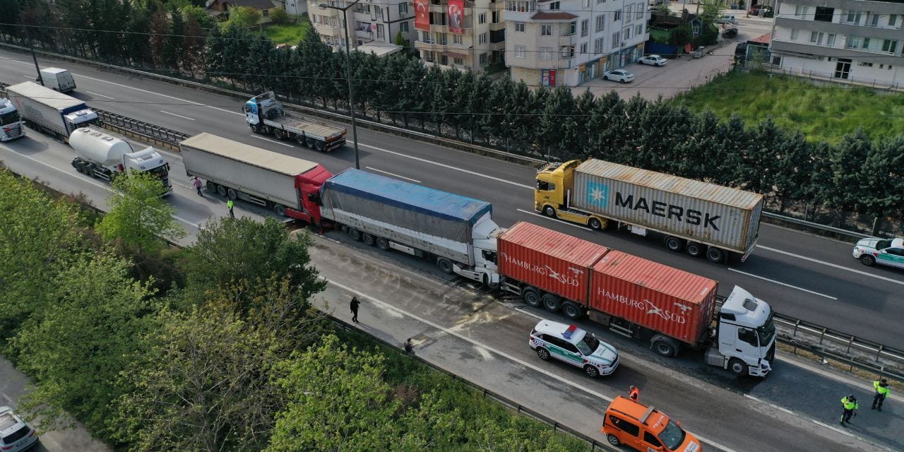 Zincirleme kazada, Ankara yönünde sol şeritte ilerleyen TIR’ların sürücülerinin kimlikleri ve plakaları henüz belirlenemedi. Diğer sürücülerin durumu 112 Acil Çağrı Merkezi’ne bildirmesi üzerine olay yerine itfaiye, sağlık ve jandarma ekipleri gönderildi. Olayda yaralanan olmadığı, ancak kaza sonrası otoyolun Ankara yönü yaklaşık yarım saat süreyle trafiğe kapandı.