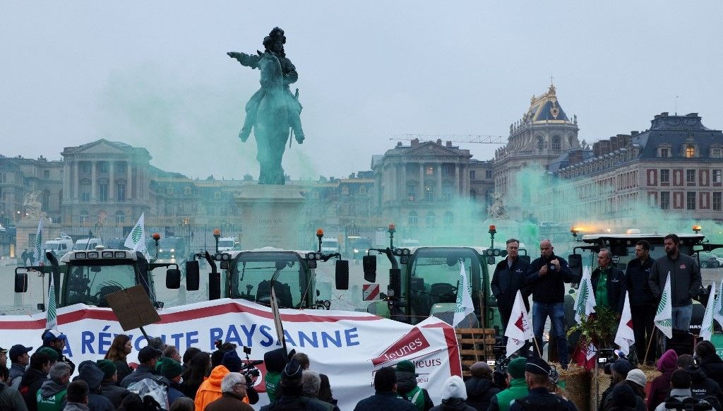 Fransız çiftçiler, Avrupa Birliği (AB) ile Güney Ortak Pazarı (MERCOSUR) arasında onay sürecindeki serbest ticaret anlaşmasına karşı Versay Sarayı’nın önünde traktörleriyle eylem gerçekleştirdi.